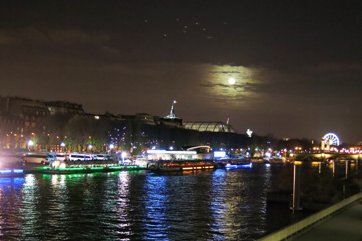 As if Paris isn’t romantic enough without a full moon, but lucky for me a saturday night stroll to see the Christmas lights and the market on the Champs Elysees surprisingly brought with it a beautiful full moon over the famous city of lights. One of my favourite walks in the french capital starts from nearby our apartment. We cross over Pont d’Alma gazing at the Louvre in the distance and the Bateaux Mouches as they hug camera flashing tourists on their decks, we walk up Avenue Montaigne while window browsing the most famous luxury stores and meet the Champs Elysees. Turning right we walk along the busy avenue watching the crazy drivers while admiring the symmetry of the Arc de Triomphe as it mirrors the Place de la Concorde. The Grand Palais greets you on the right, it’s contemporary-looking glass roof juxtaposing it’s early Beaux-Arts columns. As you get closer to the Alexandre III bridge it’s hard not to feel as if you’re in a movie – the river beneath, and the glowing lamp posts make even the coldest of nights romantic and beautiful.