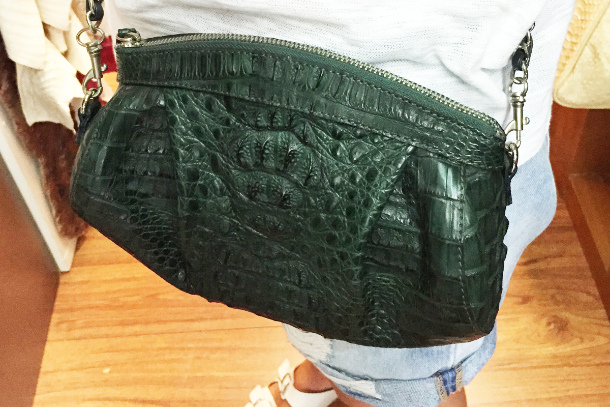 I didn’t take much convincing for me to try almost every bag in this chaotic little store, The Bangkok Bootery, in Bangtao Beach in Phuket, lucky for me i’m not intimidated by giant crocodiles with fierce teeth! Almost every inch of the floor was covered in shoe boxes with shoes on top, the wall shelves filled with clutch handbags, hangers with croc skin and Python skin jackets and loads of crocodile skins – head and all – hung upside down on the ceiling.