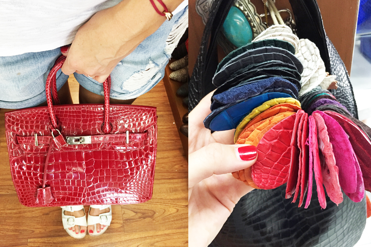 Farming crocodiles is a pretty big thing in Thailand, in fact according one story in the Bangkok Post, “Thailand has the largest crocodile farming industry in the world and famous international fashion brands source their exotic skins from the kingdom”. The manager of The Bangkok Bootery store told me that they buy the skins from registered farms and then you can have anything made on site. Any shape and in pretty much any colour! A fashionistas dream right there!